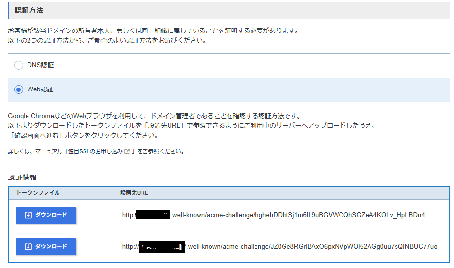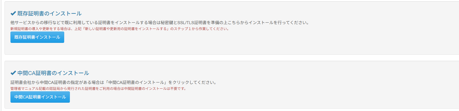 上段は、keyファイルをアップロードしたあと証明書を入れる二段構造